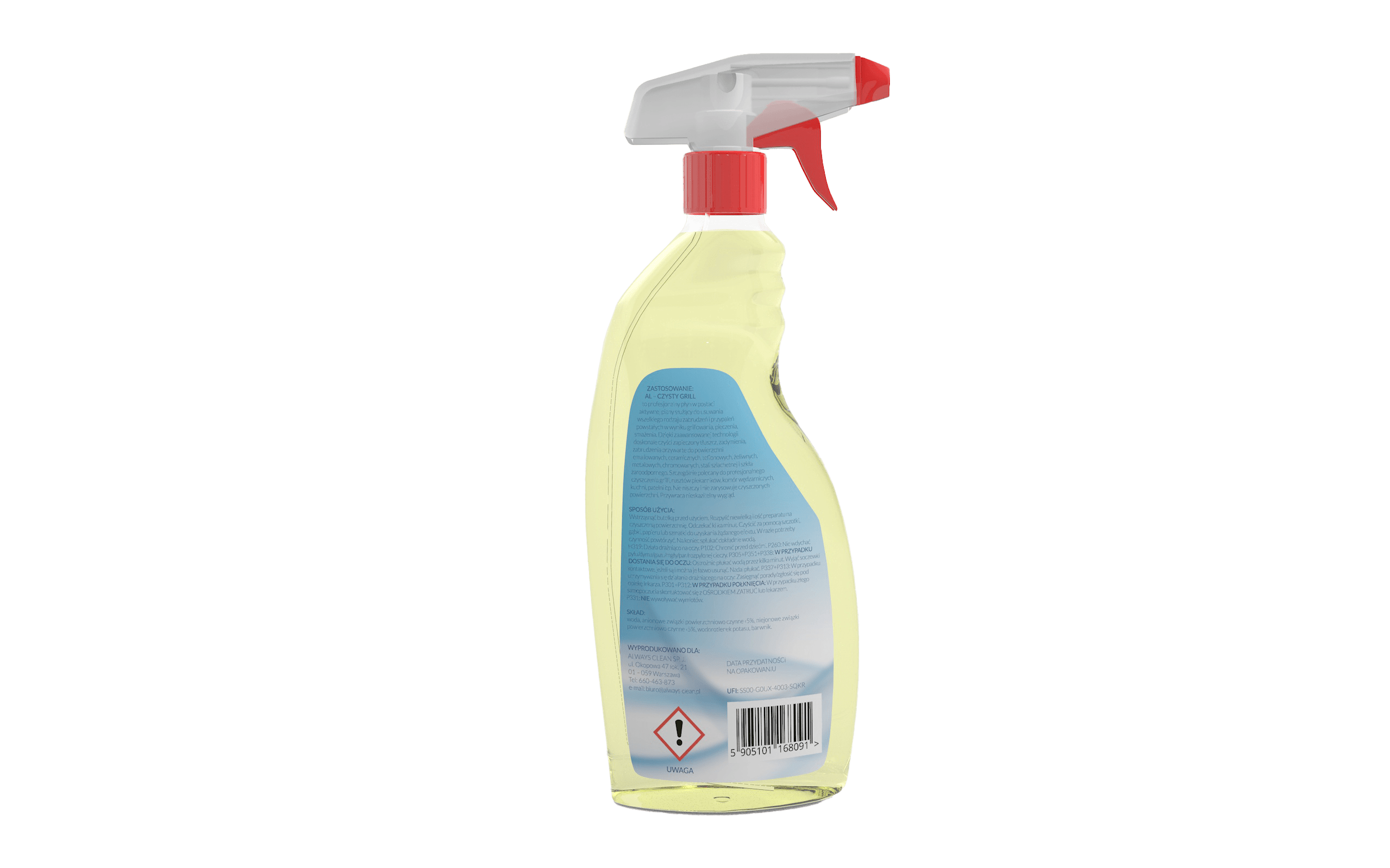 SPOSÓB UŻYCIA: Wstrząsnąć butelką przed użyciem. Rozpylić niewielką ilość preparatu na czyszczoną powierzchnię. Odczekać kilka minut. Czyścić za pomocą szczotki, gąbki, papieru lub szmatki do uzyskania żądanego efektu. W razie potrzeby czynność powtórzyć. Na koniec spłukać dokładnie wodą.
