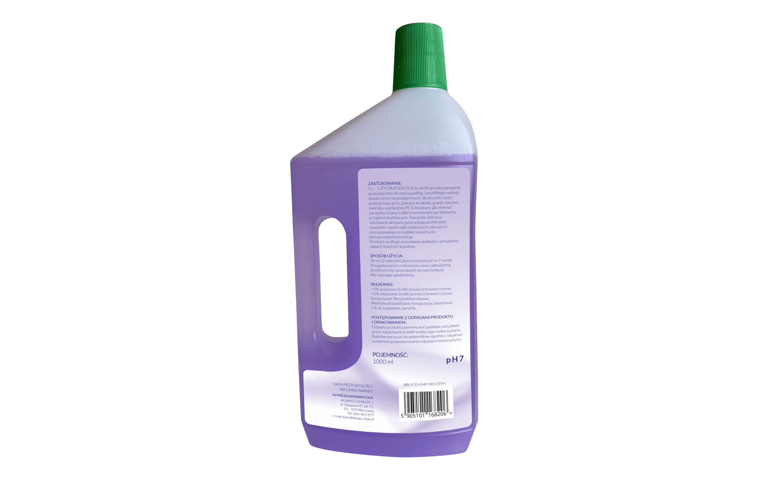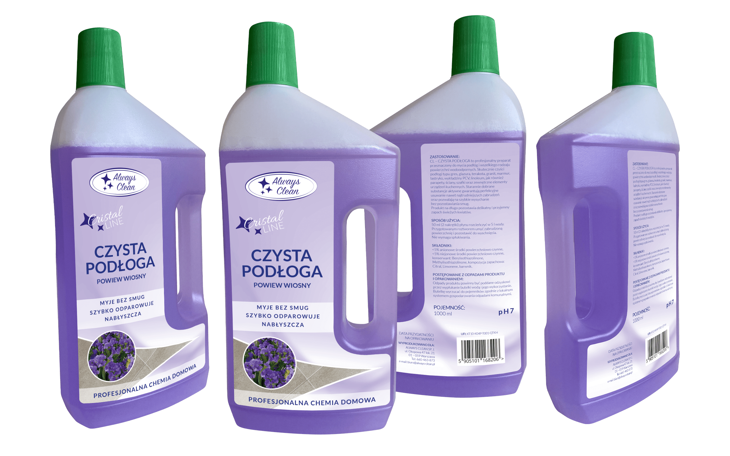 CL – CZYSTA PODŁOGA (POWIEW WIOSNY) to profesjonalny preparat przeznaczony do mycia podłóg i wszelkiego rodzaju powierzchni wodoodpornych. Skutecznie czyści podłogi typu gres, glazura, terakota, granit, marmur, lastryko, wykładziny PCV, linoleum jak również parapety, ściany, szafki oraz zewnętrzne elementy urządzeń kuchennych. Starannie dobrane substancje aktywne gwarantują perfekcyjne usuwanie nawet najtrudniejszych zabrudzeń oraz pozwalają na szybkie wysychanie bez pozostawiania smug.